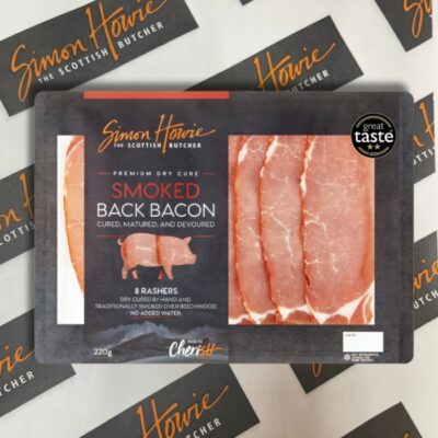 A larger pack of award-winning Dry Cured Smoked Back Bacon, cut from lean pork loin.