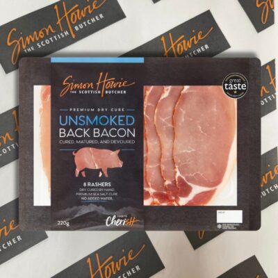 Our Dry Cure Unsmoked Back Bacon is cured by hand with our own unique cure.